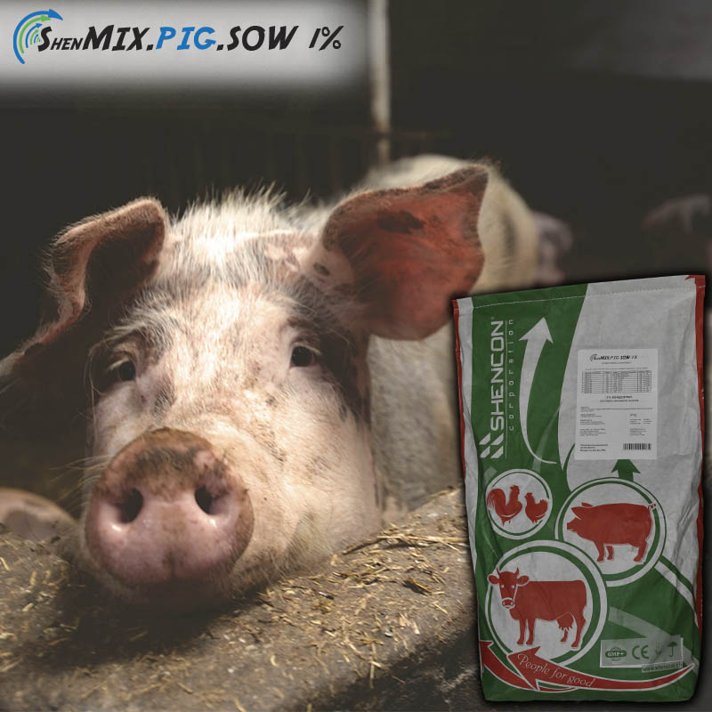 ShenMIX.PIG. Sow 1% Висококонцентровані продукти «ShenMIX.PIG. Sow 1%» -розроблені посилаючись на досвід та інноваційні технології для отримання найвищих приростів натуральним шляхом. Посилені рівні вітамінів та мікроелементів сприяють отриманню найбільших приростів на відгодівлі, збільшують вихід, покращують структуру і смакові властивості готової м’ясної продукції. Гепатопротектори забезпечують збереженість поголів’я, однорідність «гнізда» та більший вихід поросят від однієї свиноматки.